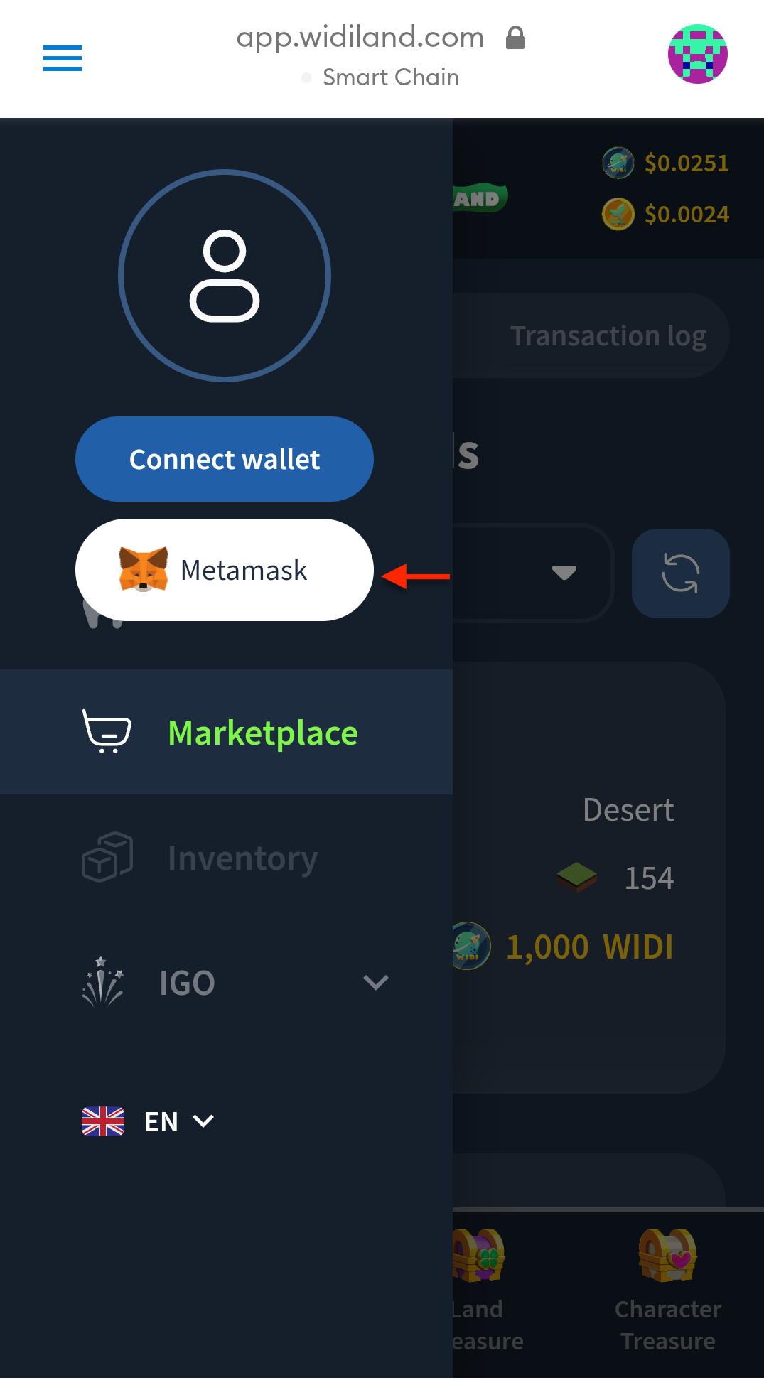 Log in to your Metamask on mobile.